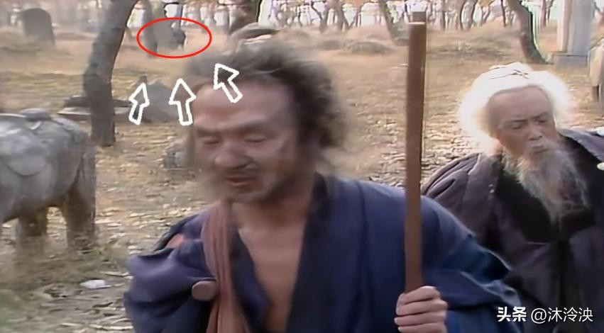 原本这一幕并没有什么问题,但等到甄士隐抱着英莲离开时,画面中却出现了一位现代男子,只见他留着现代的平头发型,看来这是群演没注意啊。