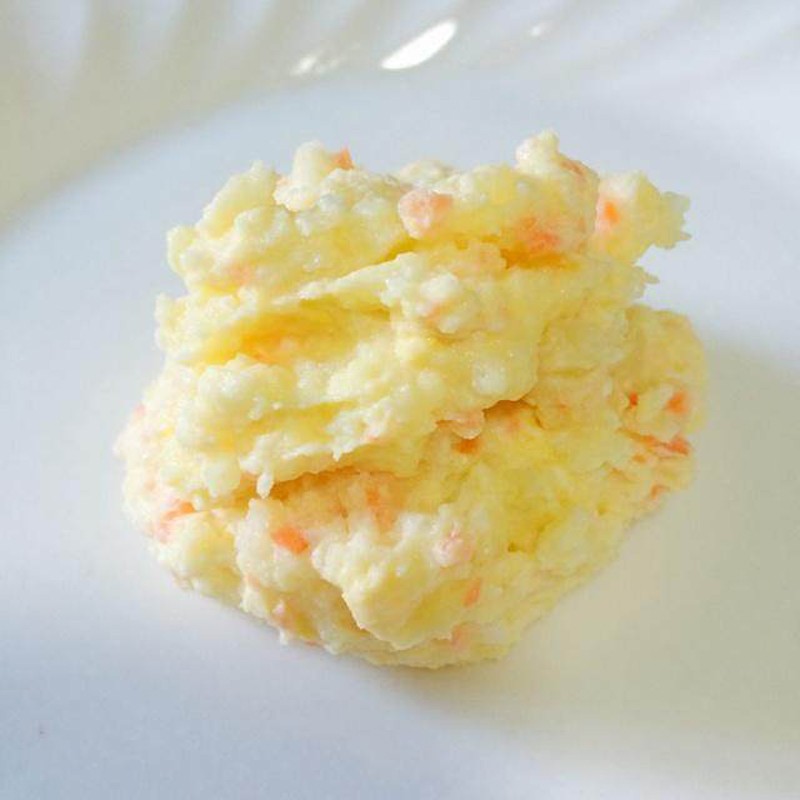 先将食材都洗净。加水放入锅中,水沸后将胡萝卜捞出备用,将土豆剥皮,切大块在放回锅中。将胡萝卜去头去尾,切碎,也可以放入搅碎机。将煮熟的鸡蛋捞出,用冷水泡一会儿再剥皮。鸡蛋完全冷却后,将蛋黄取出和沙拉酱充分混合,蛋白切碎待用。蛋黄和沙拉将将办过程中为了使得更好的融合,可以加入些许牛奶,充分搅打出细腻的蛋黄酱。等锅中的土豆可以被筷子很轻松地戳穿后就可以捞出,用勺子压成泥,也可以带上一次性手套去积压土豆,使颗粒状变小。随后加入胡萝卜碎粒和蛋白,充分搅拌均匀。等土豆泥充分冷却后,加入刚刚制作好的蛋黄酱,充分搅拌均匀即可。