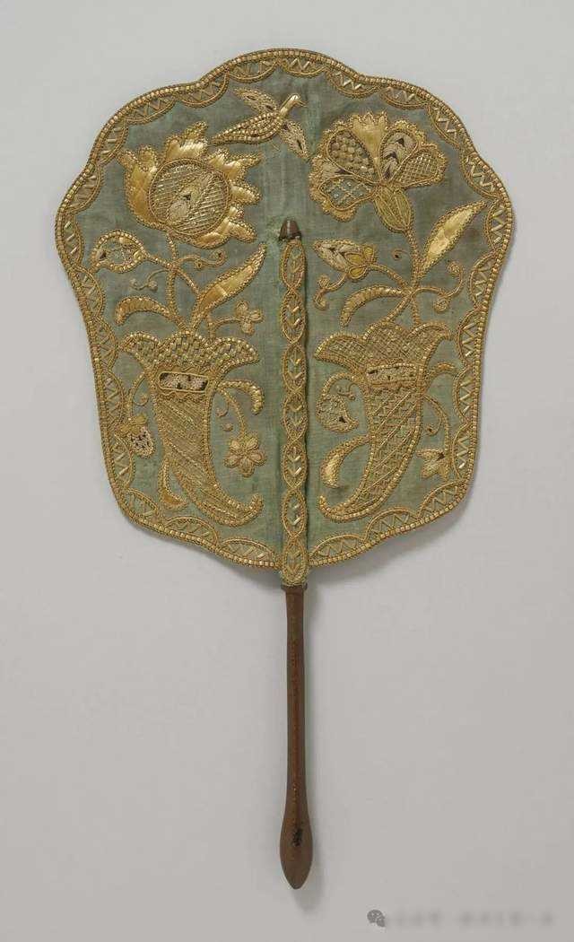 可以明确的是,欧洲上流社会的宫廷扇源自东方,实际上是来自中国,大约在16世纪。当时,16世纪比较有名的女王如英格兰的伊丽莎白一世,在画像中手持两种类型的扇子。与中国文人墨客淡雅的折扇不同,扇子在欧洲上流社会受到女性的青睐,并迅速发展成复杂而华丽的方向。