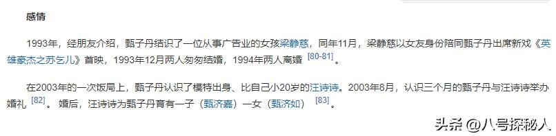 虽然甄子丹的事业如日中天,但在感情上却有一番曲折,当时在1993年,经过朋友的介绍,甄子丹与梁静慈相识,两人仅在同年,便草率的步入婚姻殿堂。【信息来源于:百度百科-甄子丹-感情】