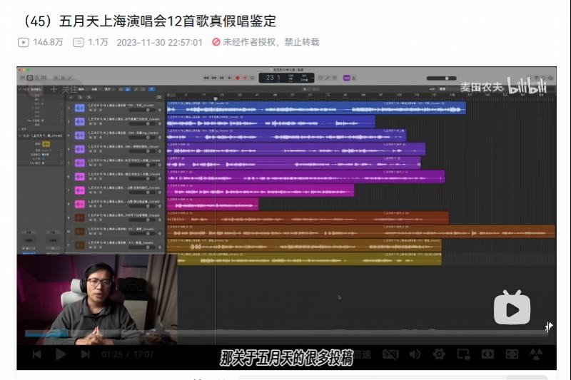 博主“麦田农夫”对“五月天”上海演唱会音频进行鉴别。