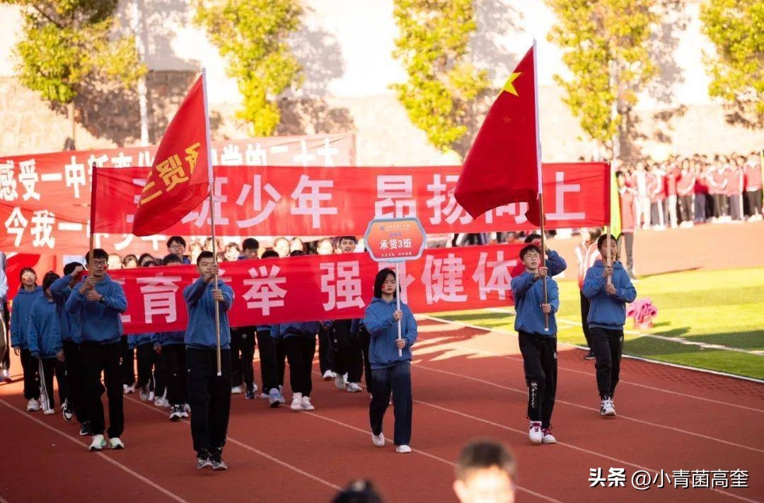 伴随着阵阵欢呼与尖叫,一个又一个的方阵映入眼帘。国旗队、校旗队、会旗队、彩旗方队率先入场,他们脚步坚定,旗帜高擎,“一中第一,我是第一”的口号响彻云霄。