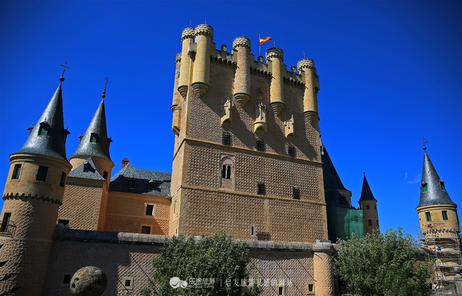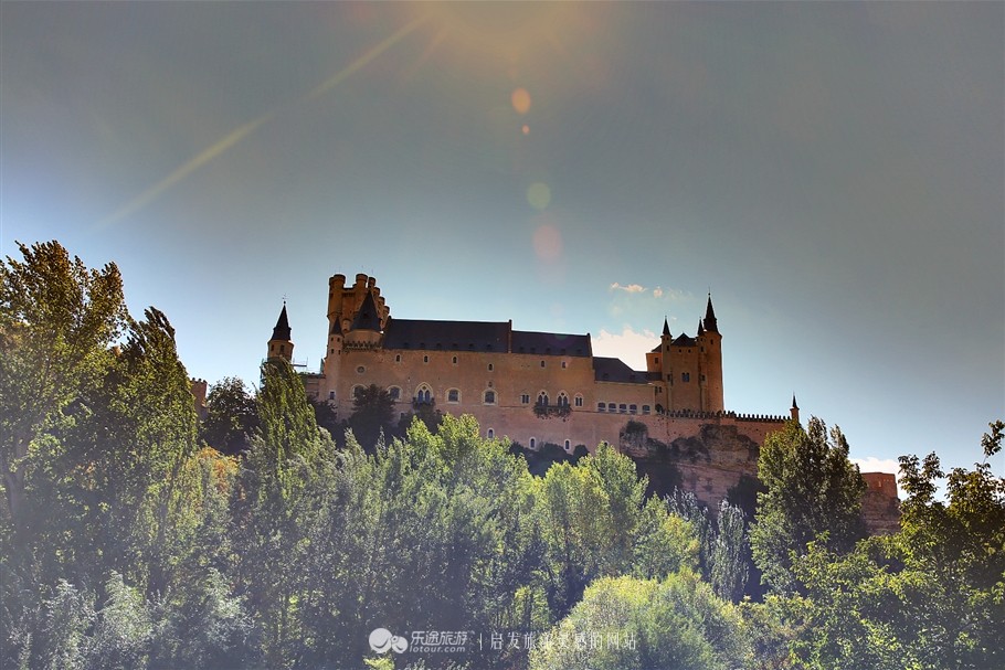 阿尔卡萨城堡,始建于十二世纪,但至十五世纪才大规模动工,1455年完工。1862年火灾受损后重建。曾是卡斯蒂亚王国的王宫,现为皇家炮兵学校的展厅。城堡融合了多种风格,充满童话色彩。据称迪斯尼白雪公主城堡造型取材于此。据说可以购票入内登上塔楼,可惜我们去的时候又在维修。