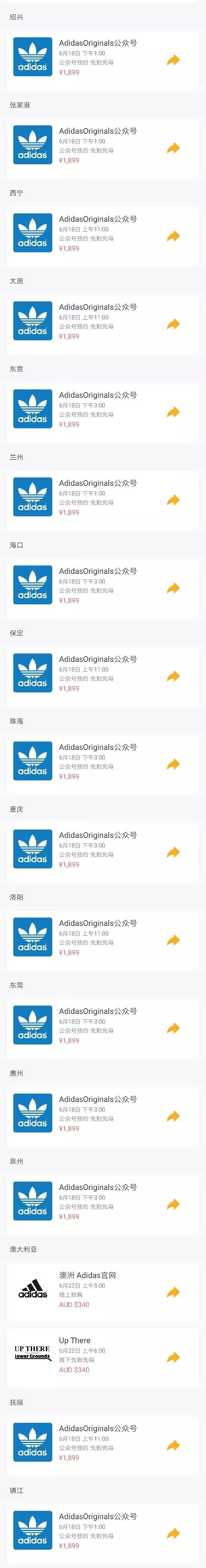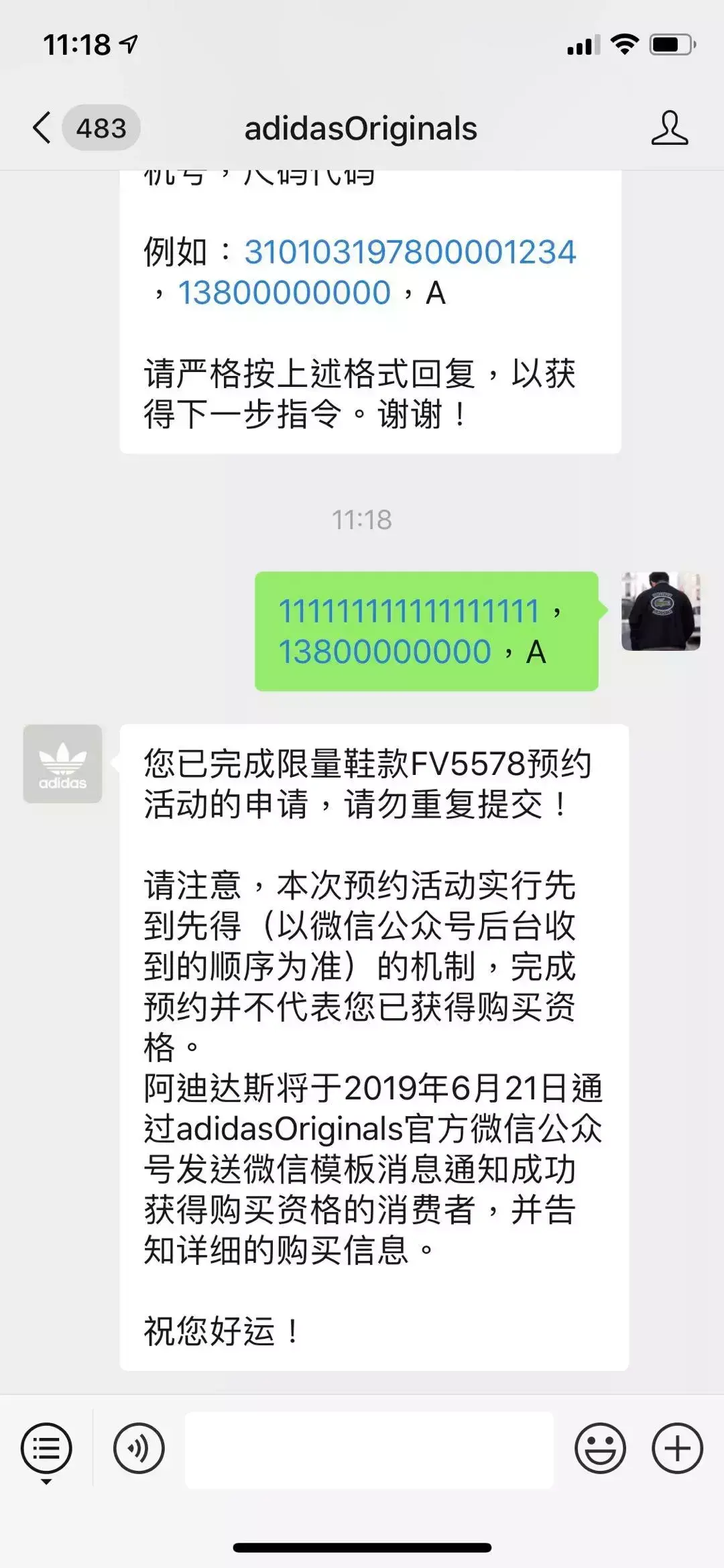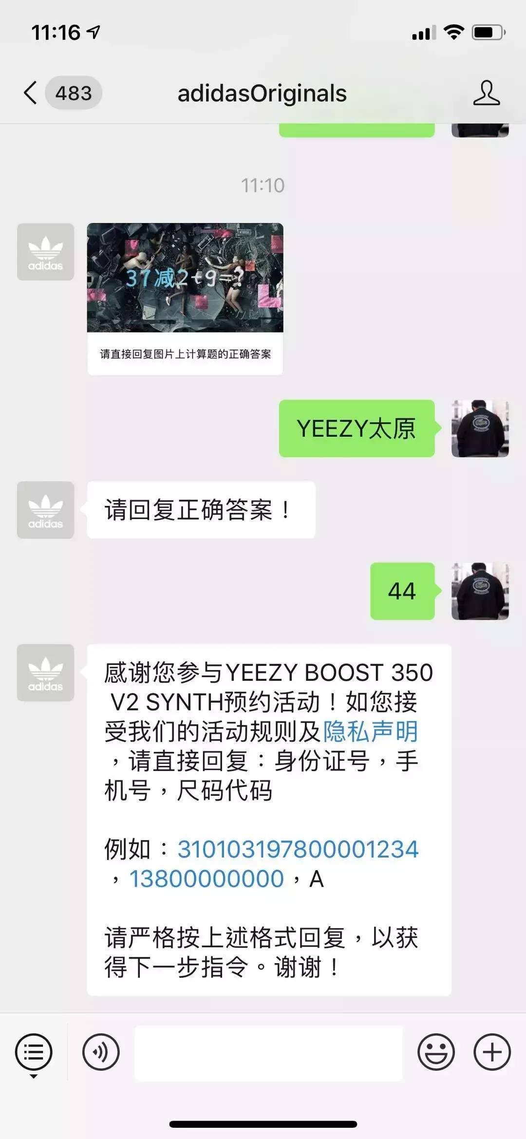 1.发送 YEEZY城市名【大写字母无空格】 至AdidasOriginals公众号
