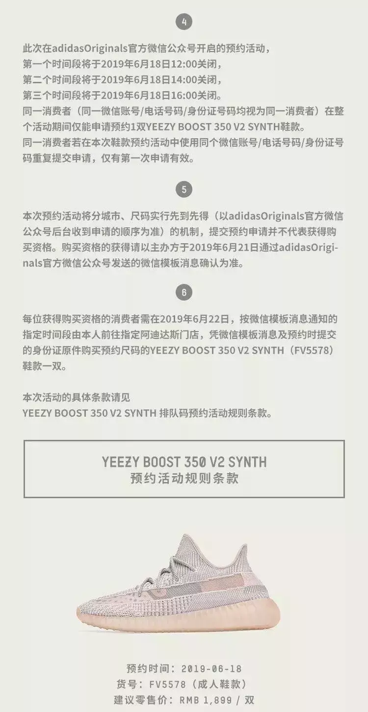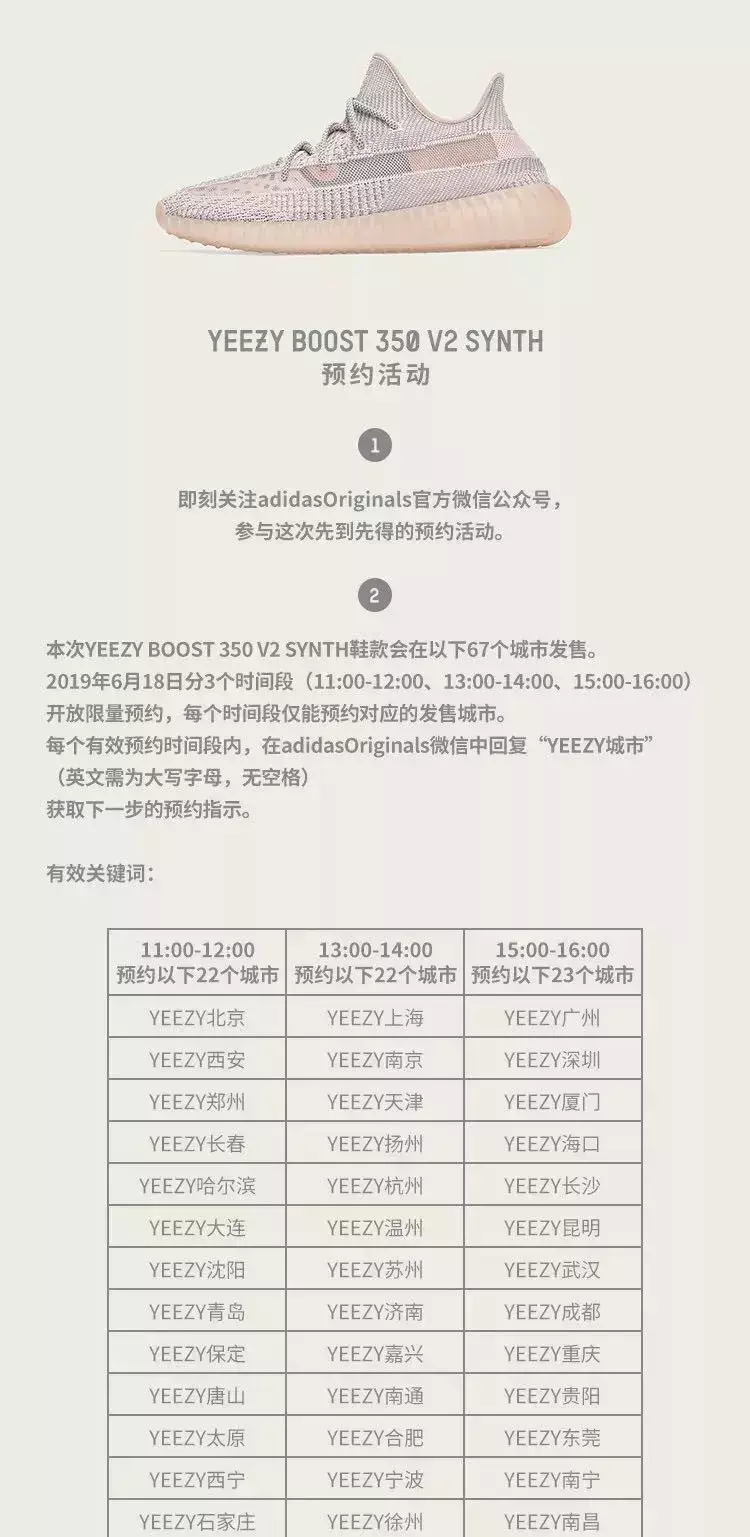 YEEZY BOOST 350 V2 "SYNTH"67城预约开始,尺码转换表已就位