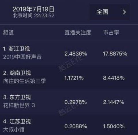 《中国好声音2019》开视峰值破2%,但中国综艺市场不再唱“同一首歌”