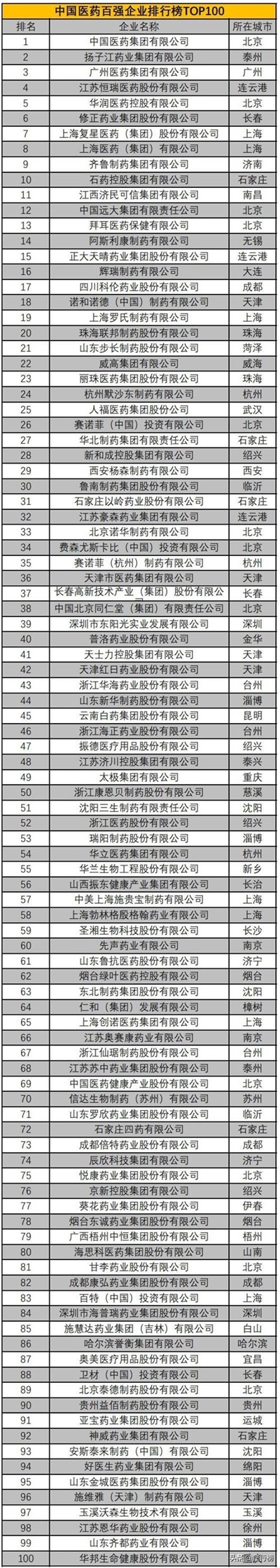 中国医药公司百强企业排行榜完整榜单,请各位看官慢慢欣赏: