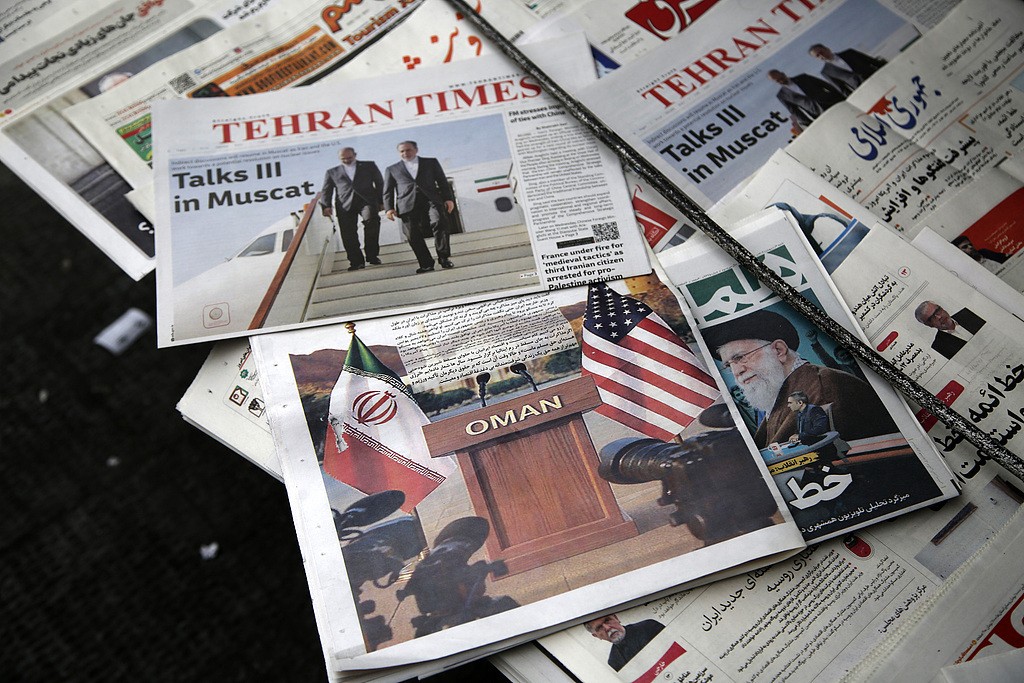 △当地时间2025年4月26日,伊朗德黑兰街头报摊的报纸在头版报道了伊美第三轮核问题间接谈判。(图自视觉中国)