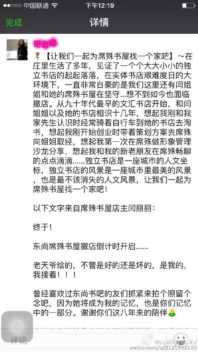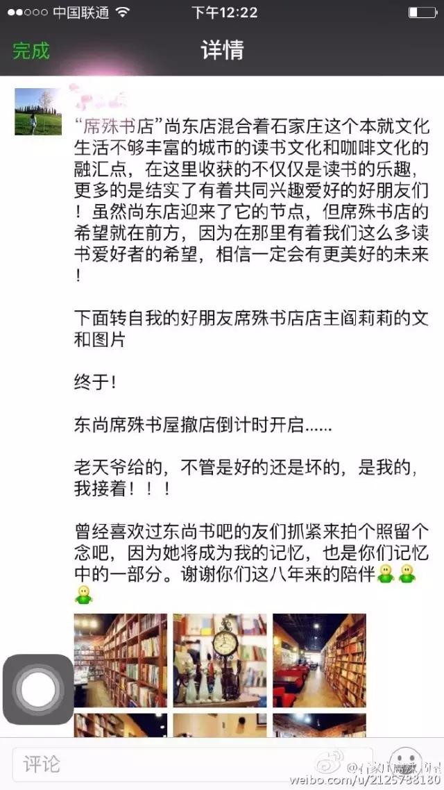 作为石家庄文化地标的席殊书屋店主阎莉莉前几天发条朋友圈消息,在北国东尚经营8年的席殊书屋进入闭店调整倒计时……