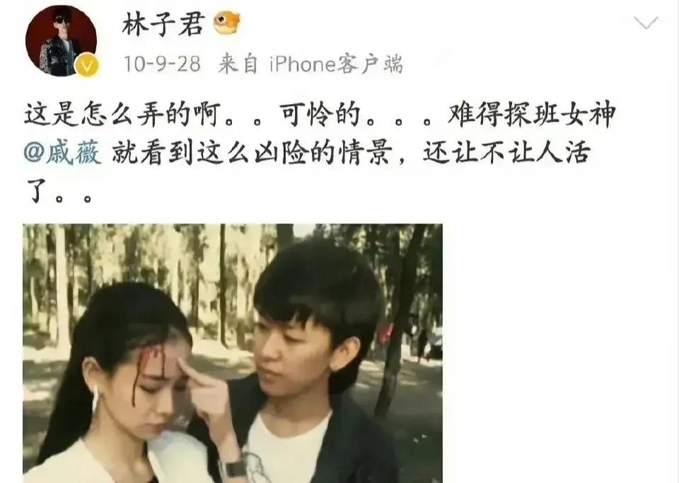 这也就有了林子君发关于探班戚薇的动态。只见林子君一脸情深的看着脸部“受伤”的戚薇,眼神里充满了爱意与心疼。