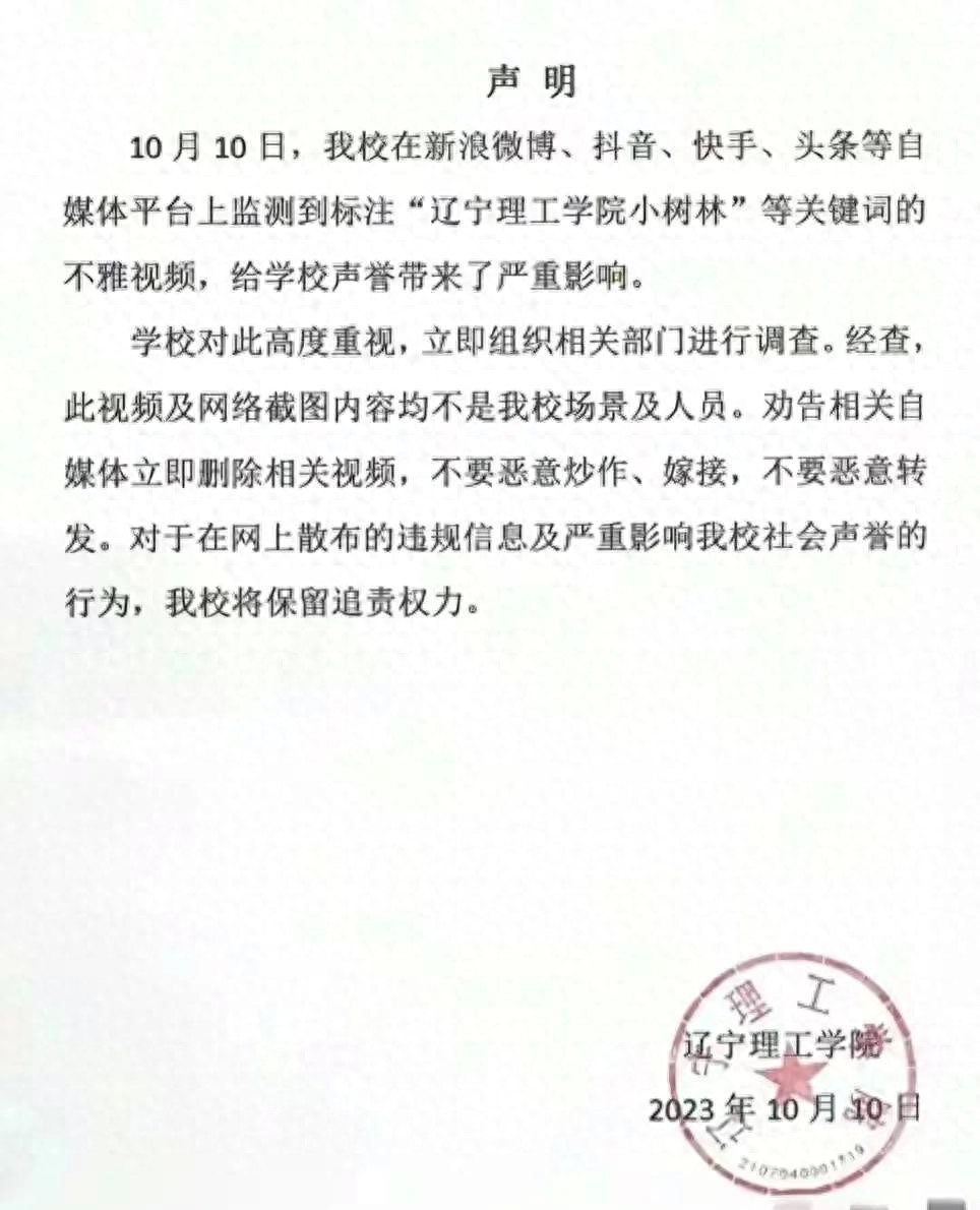 学校的紧急处置面对这一突发事件,辽宁理工学院迅速做出了反应。他们成立了调查小组,对事件进行了深入调查,并采取了措施加强对学生的管理和教育,以避免类似事件再次发生。学校的紧急处置体现了其对学生的关心和教育责任感。然而,即便学校采取了积极的措施,事件已经对学校的声誉造成了严重的影响。信任度的降低、优秀学生的放弃,都让辽宁理工学院陷入了前所未有的困境。事件背后的警示这起事件给我们带来了深刻的警示。首先,学校应该加强对学生的管理和教育,提高学生的素质和道德水平。学生进入高等学府后,除了学习知识,更应该培养良好的行为习惯和道德观念。其次,每个人都应该树立正确的价值观和道德观,遵守社会公德和法律法规。只有这样,我们才能建设一个更加美好的社会。这也需要全社会的共同努力,包括学校、家庭和社会各界的关注和配合。事件的影响这起事件也让我们看到,一段视频背后可能隐藏着更深层次的问题。