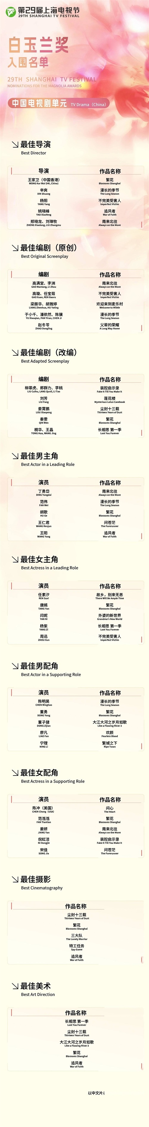 2024白玉兰奖入围名单:王一博落选杨紫提名,《繁花》成最大赢家