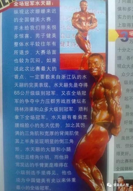 水天翮,作为一名老将,已经活跃在健美项目比赛中近25年,能坚持一件事情如此之久,除了毅力使然,梦想才是他的源动力。丰富的比赛经历,诸多荣誉加身,但他却从没有想过退役。2018年6月,水天翮参加了2018奥赛传统健美项目比赛,一举拿下传统健美决赛A组冠军。