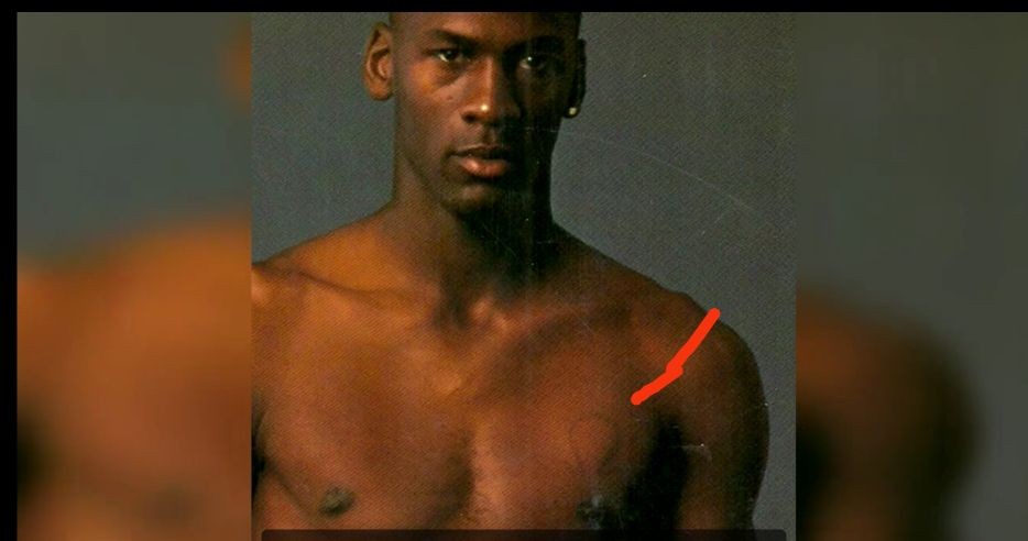 迈克尔乔丹打球的80,90年代几乎没有球员纹身,很多人不知道也看不到迈克尔乔丹只有一个纹身在胸部左侧是一个小马蹄,但这其实应该是欧米伽符号。