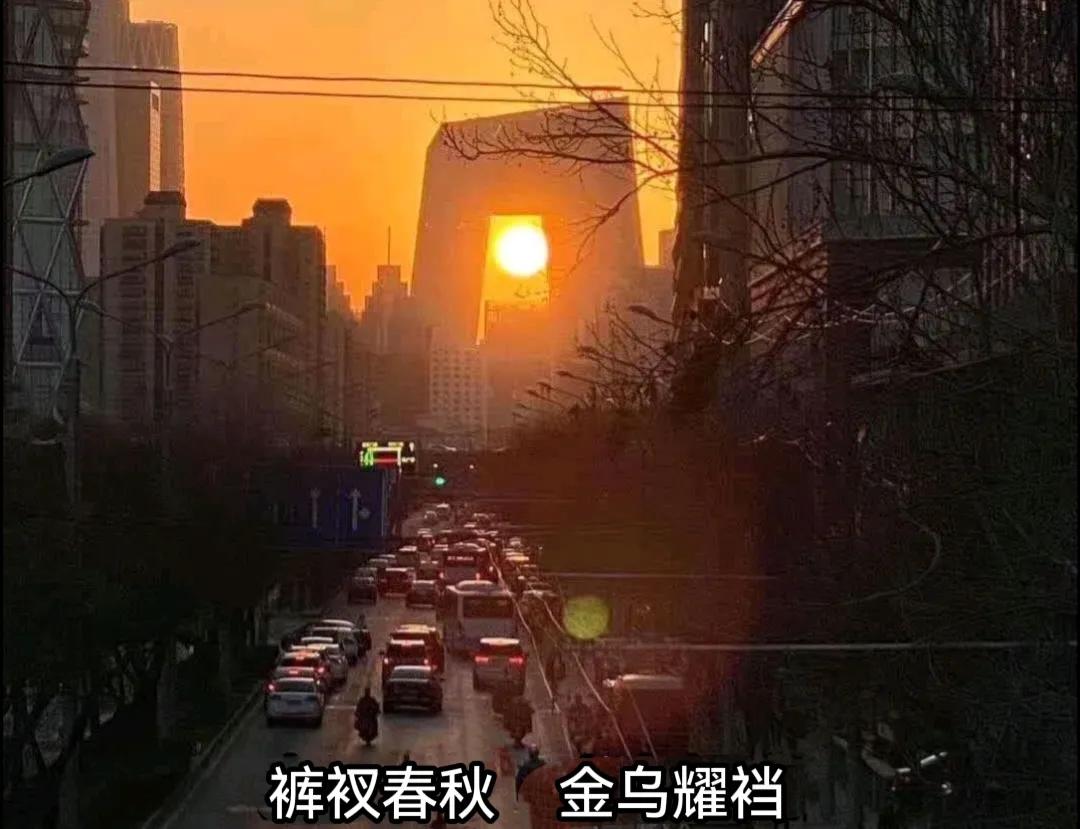 上次说过,每年春分秋分下午,大裤衩子会出现高楼悬日、金乌西坠的难得景观。