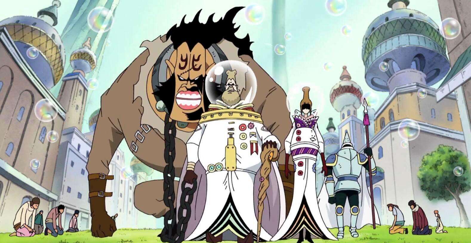 香波地群岛,天龙人查尔罗斯看中一个女护士,想带走给他当妻子(估计是小妾性质),这时女护士的未婚夫站出来,被查尔罗斯一枪放倒,连周围的海贼都吐槽天龙人比想象的更加无法无天。索隆出现差点杀了查尔罗斯,又因为大胃女的周旋,让查尔罗斯误以为索隆死了,这才罢了。