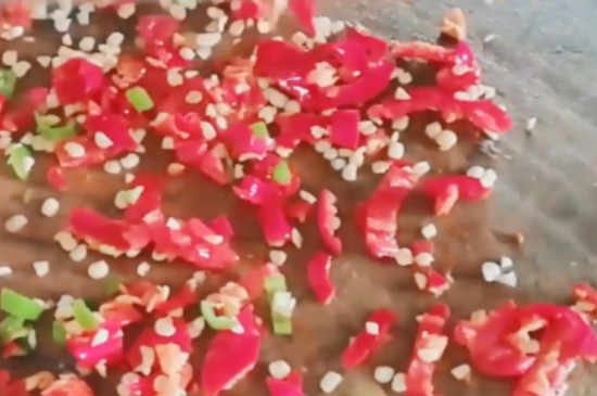 将辣椒切碎放到木瓜片里,搅拌均匀。