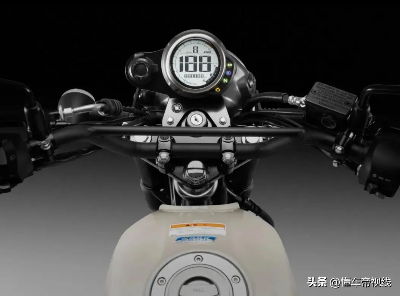 外观设计方面,飞致GT150主打复古风格,并且融入了一些Scrambler(攀爬车)元素,车身线条和细节位置的设计都十分“圆润”。具体来看,新车的油箱造型饱满,这也是整车视觉重心位置所在,同时,飞致GT150还配备有圆形的后视镜、大灯、仪表以及“毛毛虫座垫”,设计并不花哨,但有效突出了复古味道。