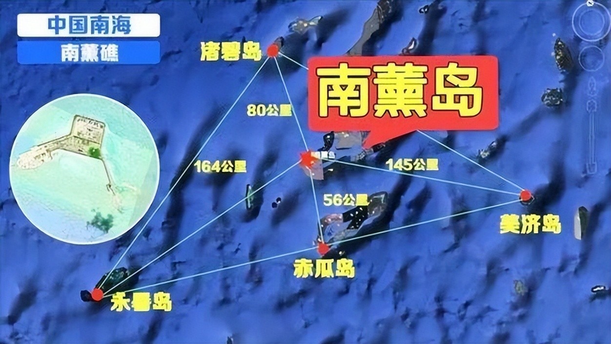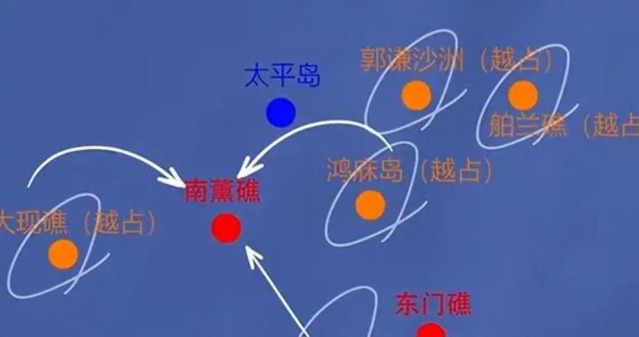 除了南薰礁北边的太平岛归属台湾政府管辖外,其余三个方向由越南控制的岛礁,对南薰礁形成了合围之势。